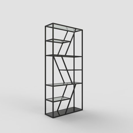 Стеллаж "Demid" черный с прозрачным стеклом (2000х900х300)