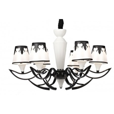 Материал: шесть тканевыж абажуров; основание железо+керамика, окрашенное в черный цвет
