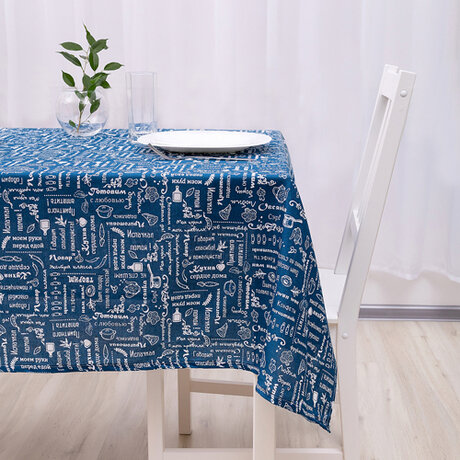 Скатерть 'Правила кухни' 145х180, рогожка, 100 % хлопок, 'Индиго'