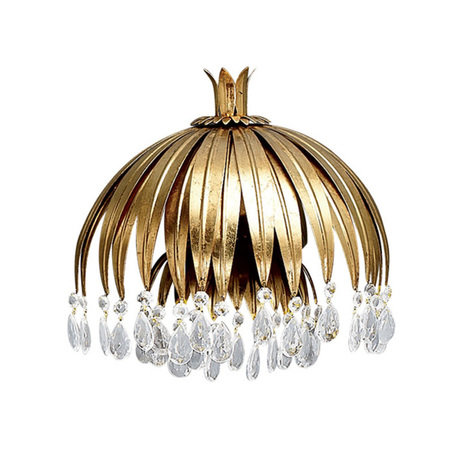 Подвесной светильник из металла золотого цвета. Светильник выполнен в виде цветка с ниспадающими лепестками. Хрустальные прозрачные подвески на конце лепестков. Высоту светильника можно регулировать. Дизайн: Karen Lenz.