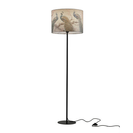 Торшер V11509-1F Strauss-изысканность в каждом штрихе. Элегантный торшер из коллекции Strauss от итальянского бренда сочетает в себе изысканный дизайн и функциональность. Основное внимание привлекает декоративный текстильный плафон с эксклюзивным принтом павлинов на фоне цветущих ветвей-он придает интерьеру утонченность и делает светильник настоящим арт-объектом.