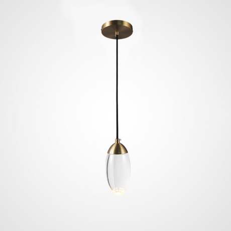 Подвесной дизайнерский светильник FIERA из стекла и металла в цвете латунь обладает стильным и лаконичным дизайном. Светильник имеет встроенный LED элемент, свет от которого проходит через толщу стекла, делая свечение мягким и рассеянным. Цоколь:LEDФорма плафона:ОвалЦвет плафона:ПрозрачныйМатериал плафона:СтеклоДиаметр плафона:9 смВысота плафона:20 смВысота:180 смИсточник освещения:В комплектеСтиль:Лофт;Минимализм;СовременныйМесто применения:Гостиная;Детская;Кухня;Спальня