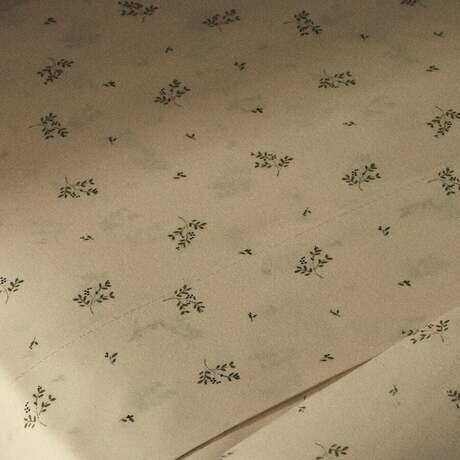 Плоский лист из хлопкового перкаля плотностью 200 нитей с принтом в виде листьев.