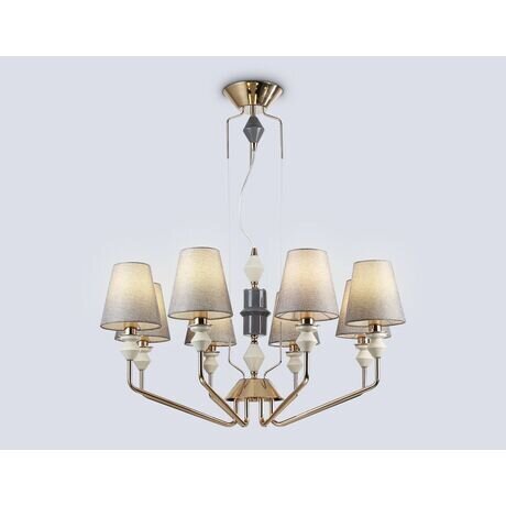 Люстра Ceramo Classic LH75403: 8 плафонов освещают 25 м² в золотисто-сером неоклассическом стиле