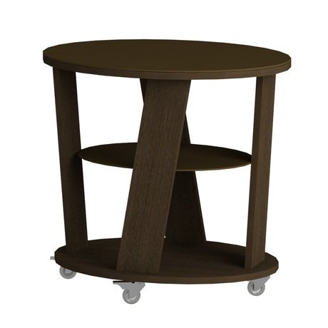 Комплектация - С полками, Вес - 12, Высота - 56.5, Глубина - 45.3, Ширина - 60.3, Тип - Журнальный, Цвет каркаса - Венге, Цвет столешницы - Венге, Материал каркаса - ЛДСП, Материал столешницы - Стекло, Форма - Овальный.