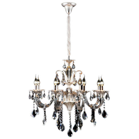 Назначение светильника: для гостиной, Стиль светильника: классика, Материал светильника: металл, стекло, хрусталь, Ширина: 750 мм, Высота: 1150 мм, Количество ламп: 8 шт, Тип лампы: накаливания, Мощность: 40 Вт, Патрон: Е14, Цвет арматуры: жемчужное серебро