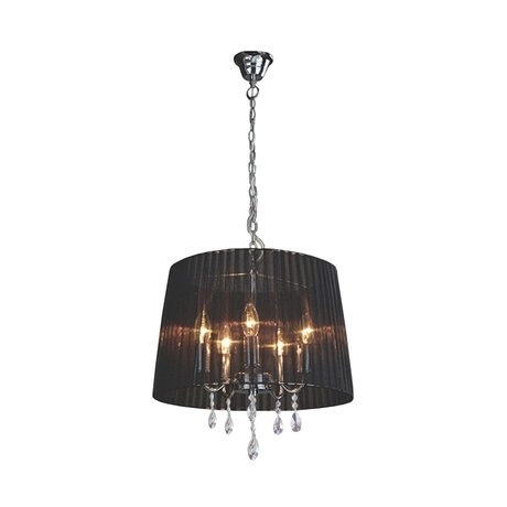 Патрон: Е14, Назначение светильника: для комнаты, Стиль светильника: классика, Цвет арматуры: хром, Мощность: 40 Вт, Вес брутто: 2 кг, Тип лампы: накаливания, Количество ламп: 5 шт, Диаметр: 410 мм, Высота: 1000 мм, Материал светильника: металл, ткань