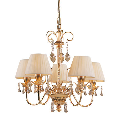 Назначение светильника: для гостиной, Стиль светильника: классика, Материал светильника: металл, стекло, Диаметр: 594 мм, Высота: 547 мм, Количество ламп: 5 шт, Тип лампы: накаливания, Мощность: 40 Вт, Патрон: Е14, Пульт ДУ: нет, Цвет арматуры: золото