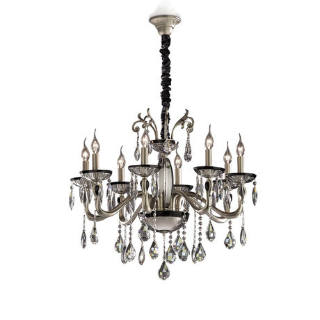 Назначение светильника: для комнаты, Стиль светильника: арт деко, Материал светильника: металл, хрусталь, Диаметр: 760 мм, Высота: 600 мм, Количество ламп: 8 шт, Тип лампы: накаливания, Мощность: 60 Вт, Патрон: Е14, Цвет арматуры: никель
