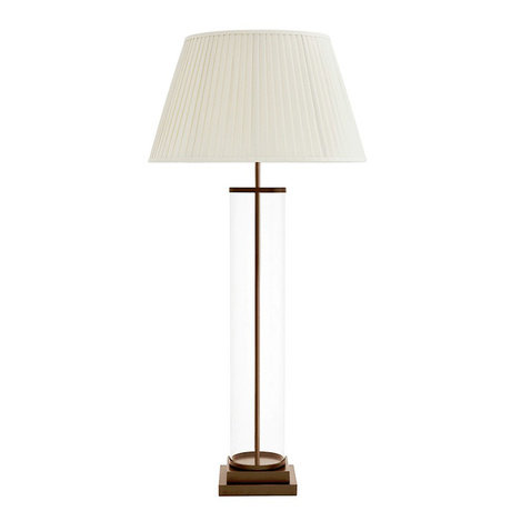 Настольная лампа Table Lamp Phillips с основанием из металла цвета латунь в колбе из прозрачного стекла. Абажур выполнен из плиссированной ткани кремового цвета.