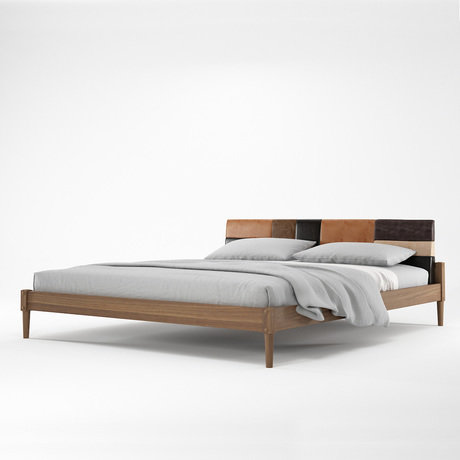 Каркас изготовлен из массива тика. Благодаря аккуратной финальной шлифовке древесина сохранила свои естественные оттенки и узоры. Изголовье венчает большая, удобная подушка фирменной для бренда разноцветной окраски. Обивка, конечно же, выполнена из натуральной кожи. Ведь мастера Karpenter неуклонно руководствуются принципом – красивая, надёжная и комфортная мебель из натуральных материалов.