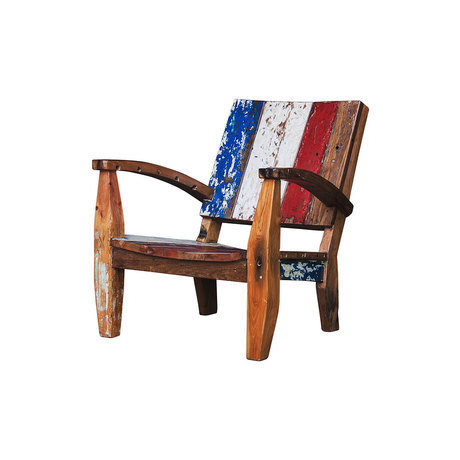 Кресло, выполненное из массива древесины старого рыбацкого судна, такой как: тик, махагон, суар, с сохранением оригинальной многослойной окраски.